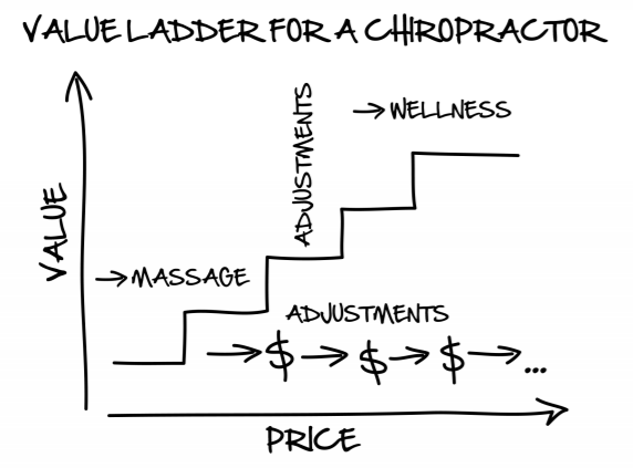 In DotCom Secrets, a brilliant marketing book by Russell Brunson, Russell talks about how he helped save his friend's sinking chiropractic business by helping him define his Value Ladder.
